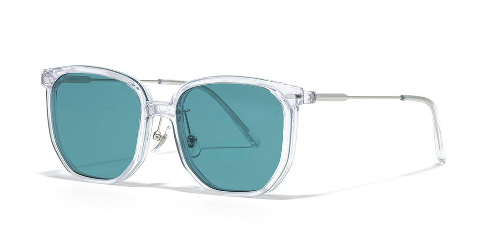 A refined design featuring oversized lenses paired with sleek metal temples.