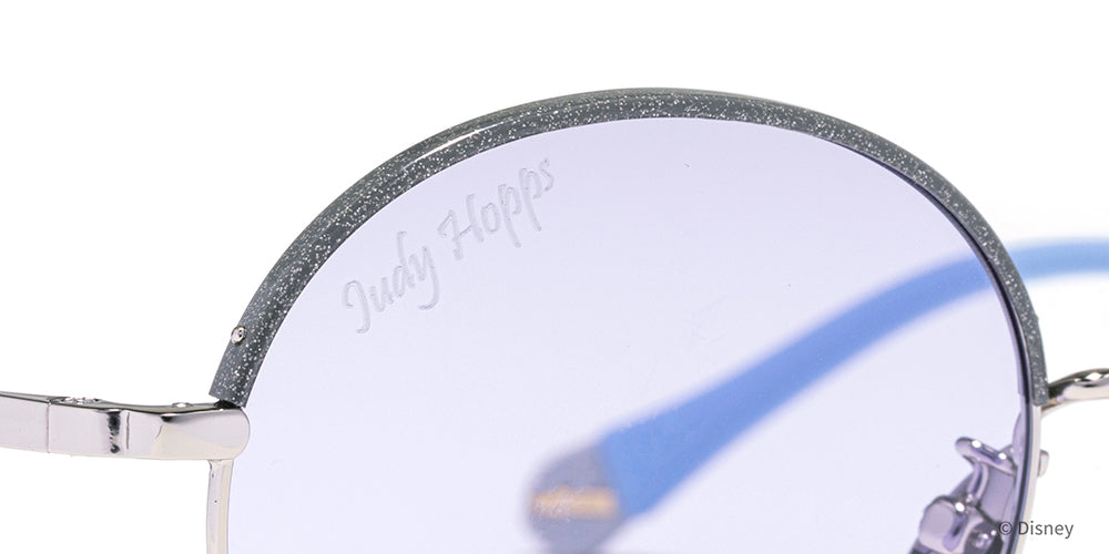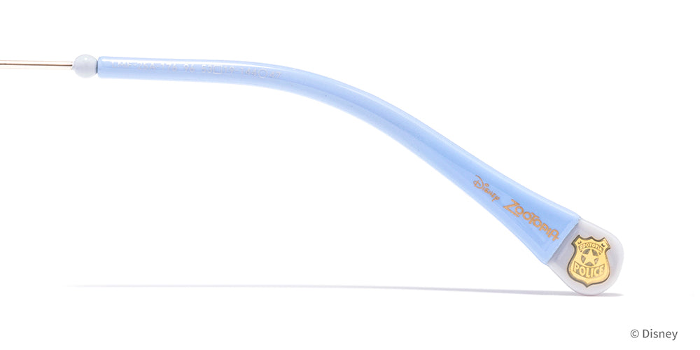 The lenses feature Judy’s signature light blue color. engraved with her silhouette and full name. The temples are accented with metal parts inspired by a police officer’s chain. while the temple tips incorporate her police badge and name??capturing the spirit of the movie in every detail.