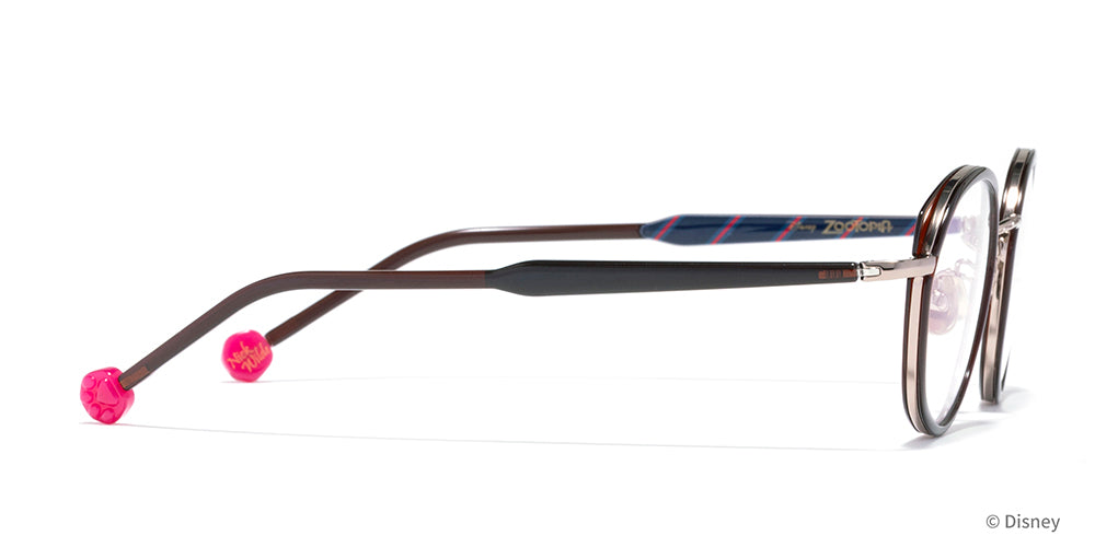 The front design reflects Nick’s face. while the temples are modeled after his necktie. The temple tips feature a popsicle motif shaped like Finnick’s paw print??capturing the playful world of the film in every detail.