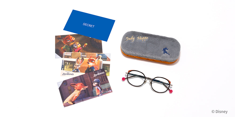 The set includes a bi-color glasses case that switches between Nick and Judy on each side. and one randomly selected cleaning cloth (out of four designs). each printed with a memorable scene from the movie.