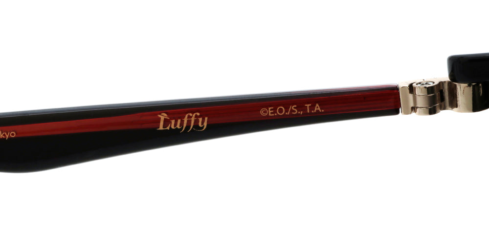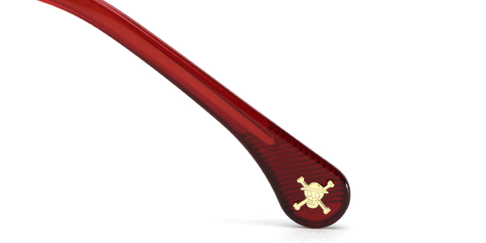 The magnetic plate features a straw hat design. The metal hinge detail is inspired by the Gum-Gum Fruit. Luffy’s flag is printed on the temple tip.